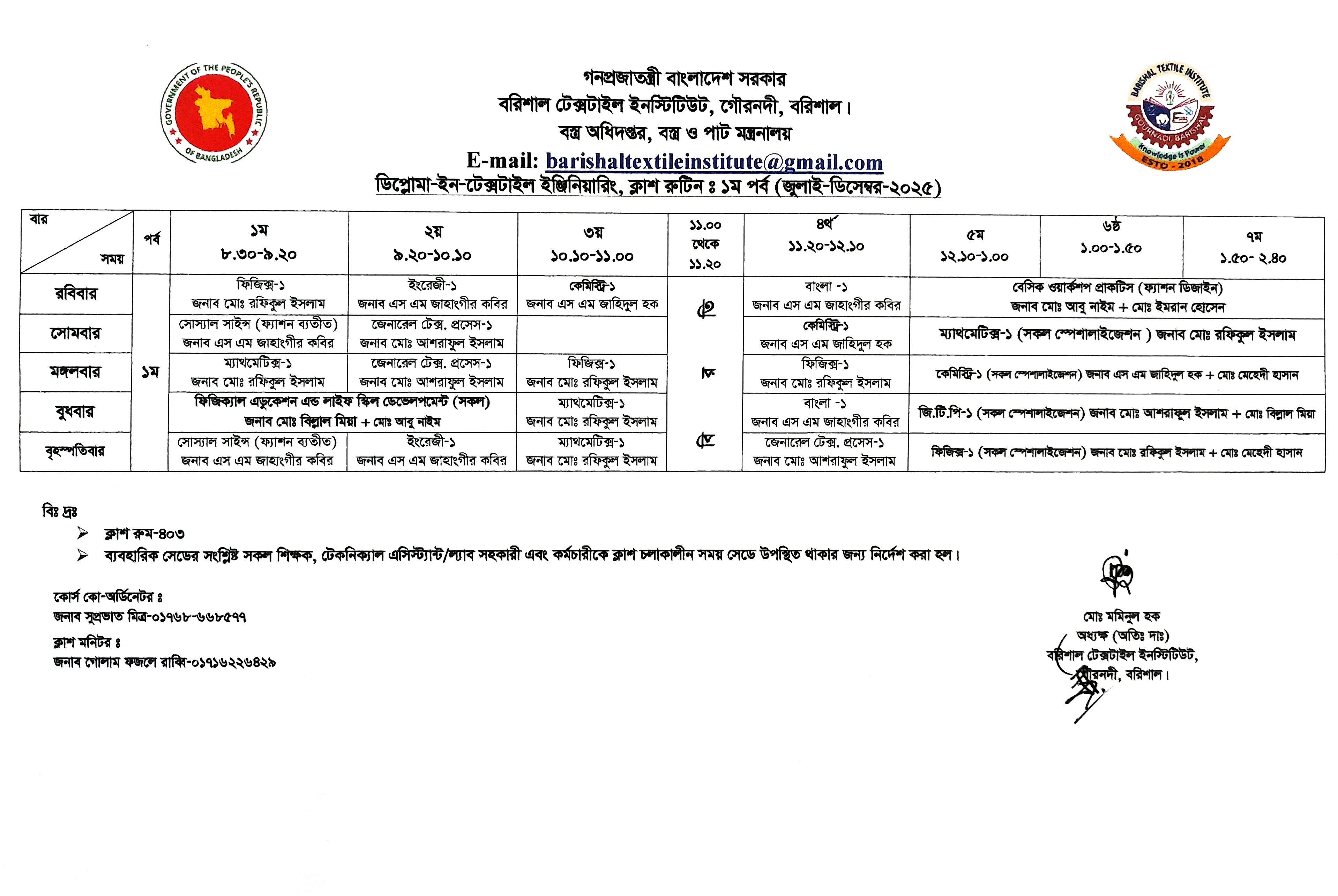 ক্লাস রুটিন- প্রথম পর্ব ২০২৫-২৬ সেশন