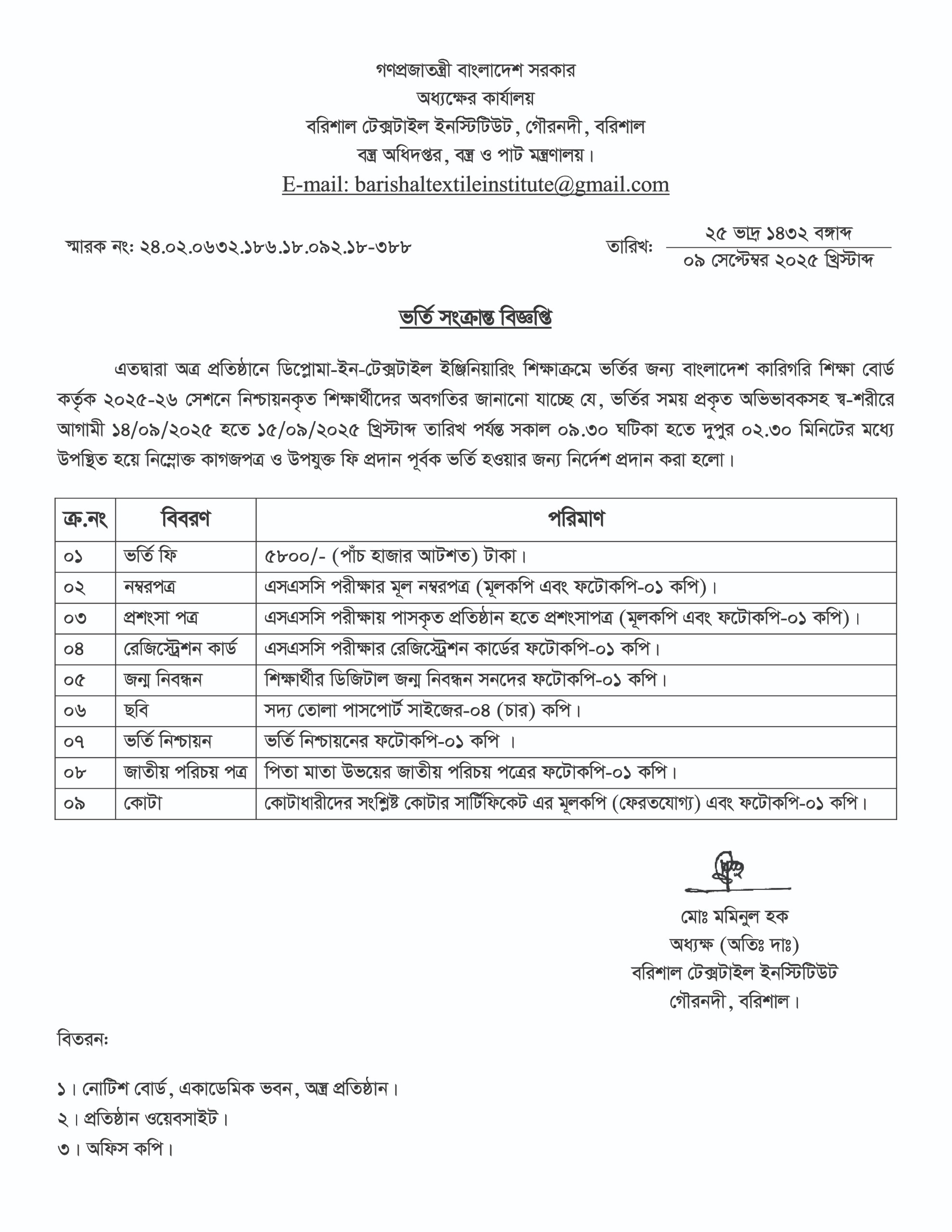 বিজ্ঞপ্তি- ভর্তি সংক্রান্ত, সেশন: ২০২৫-২৬